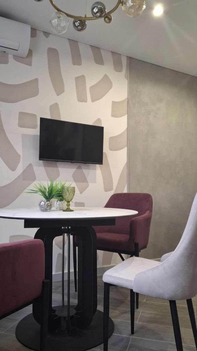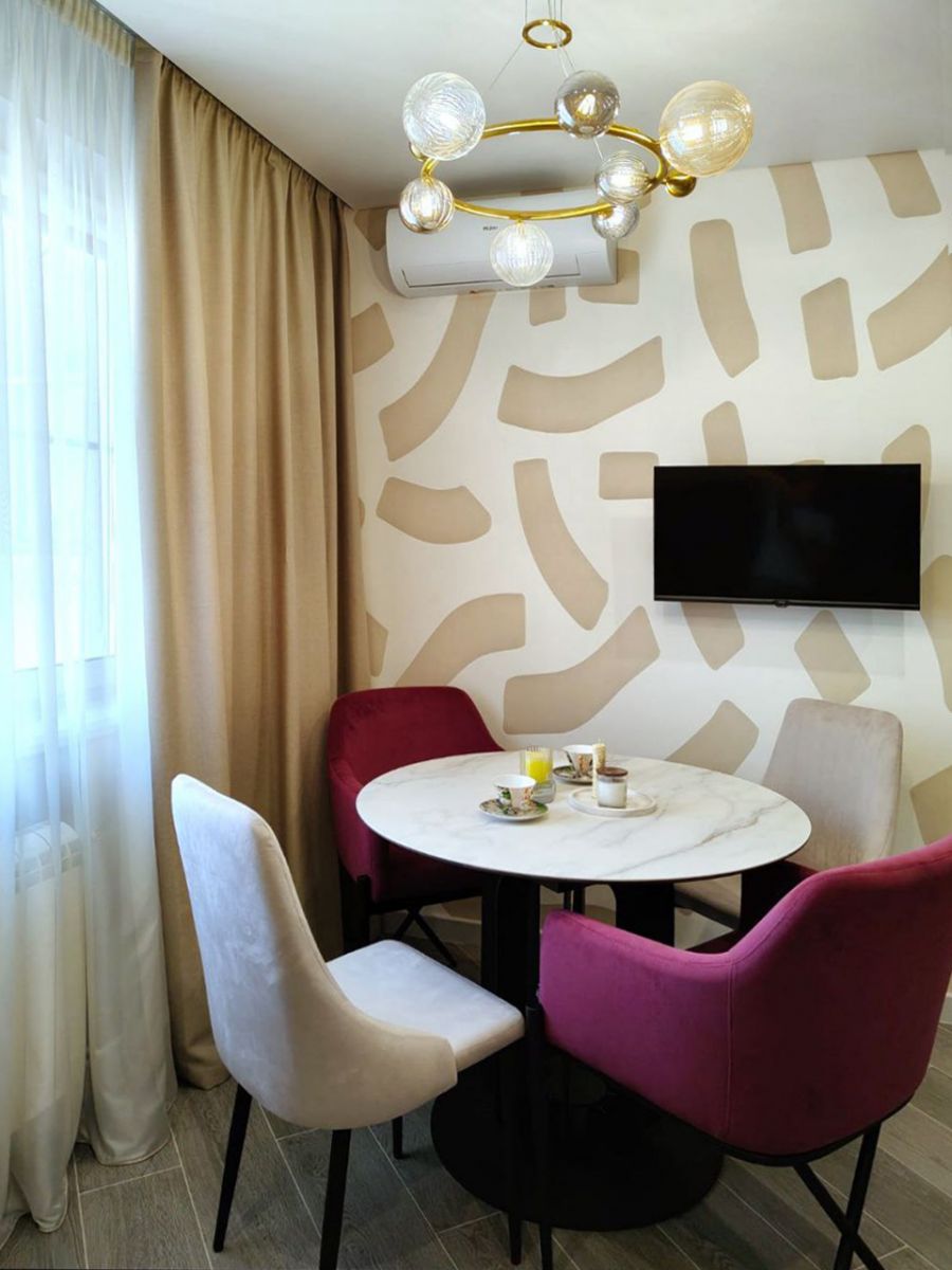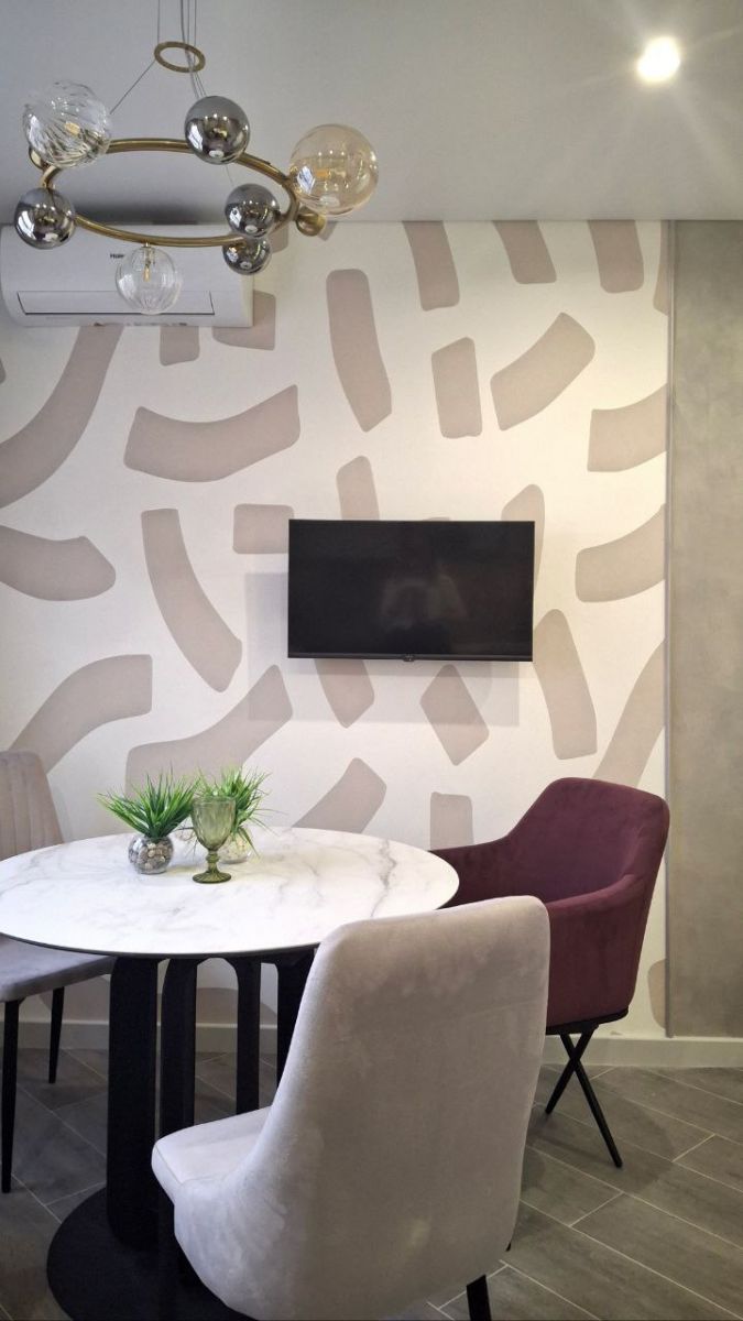 Друзья, сегодня мы хотим поделиться с вами удачным примером того, как дизайнер Дарья Жаворонкова  с помощью наших бесшовных обоев ECO c небанальной геометрией преобразила обеденную зону!