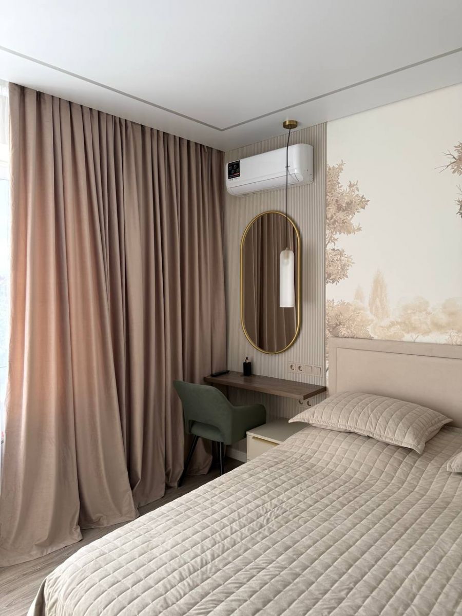 Знаете, бывают такие уголки, которые наполняют пространство особой, трепетной атмосферой. Перед вами - именно такое пространство, оформленное нашей ECO фреской с изображением леса (Арт. 34090). Кажется, стоит лишь протянуть руку, и коснешься прохладной коры дерева, услышишь шепот ветра в кронах, почувствуешь мягкость лесного мха под ногами. Обратите внимание на тончайшую игру оттенков: здесь нет резких контрастов, лишь плавные переходы, напоминающие игру света, пробивающегося сквозь кроны деревьев. Без сомнений, в этой спальне будет приятно просыпаться, проводить вечера в уютном кресле, наслаждаясь видом на живописный пейзаж!