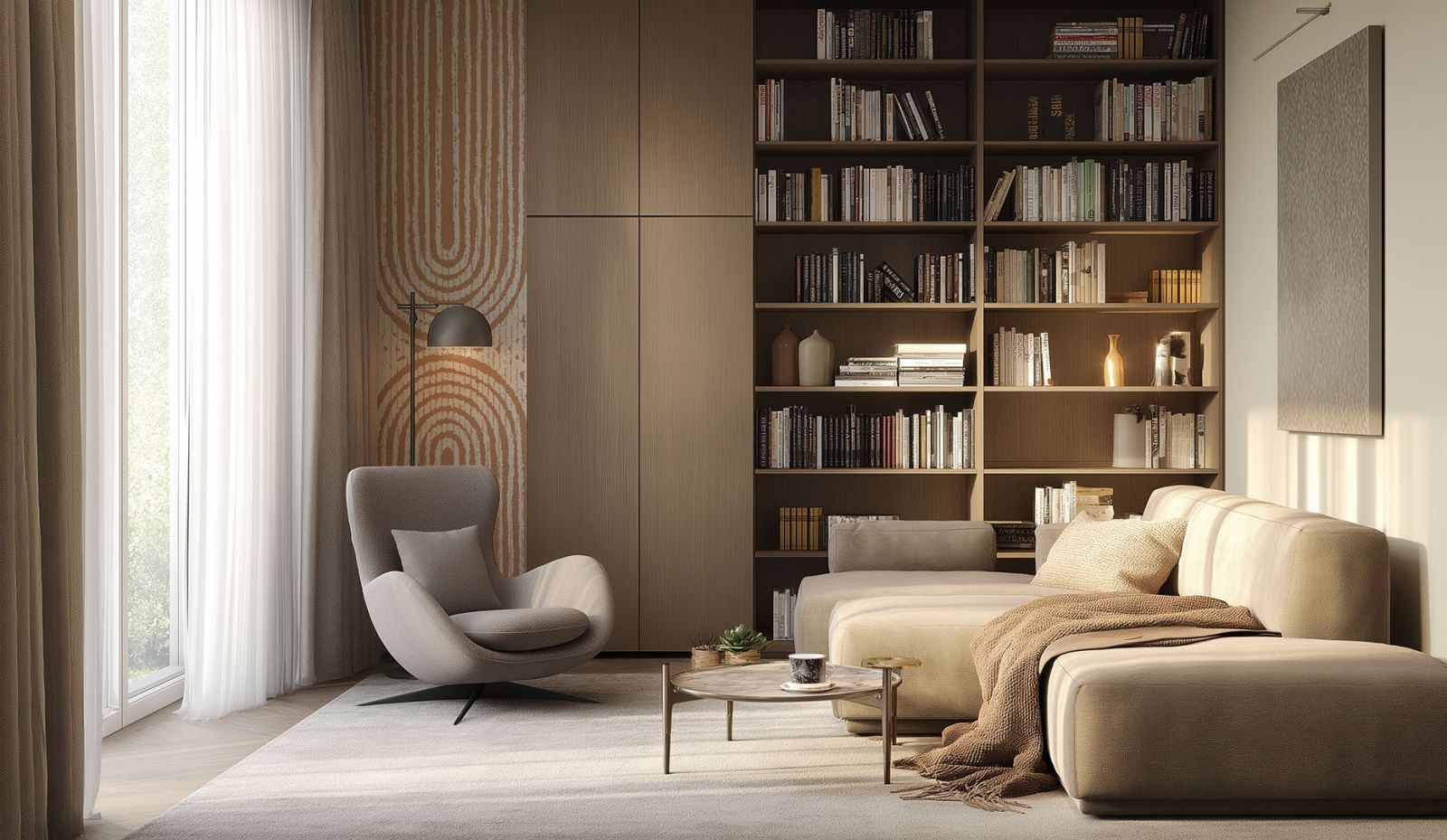 Подумайте о правильном освещении, оно играет ключевую роль в создании комфортной атмосферы для чтения. Помимо настольной лампы, рассмотрите возможность установки точечных светильников, которые можно направить на полки с книгами.