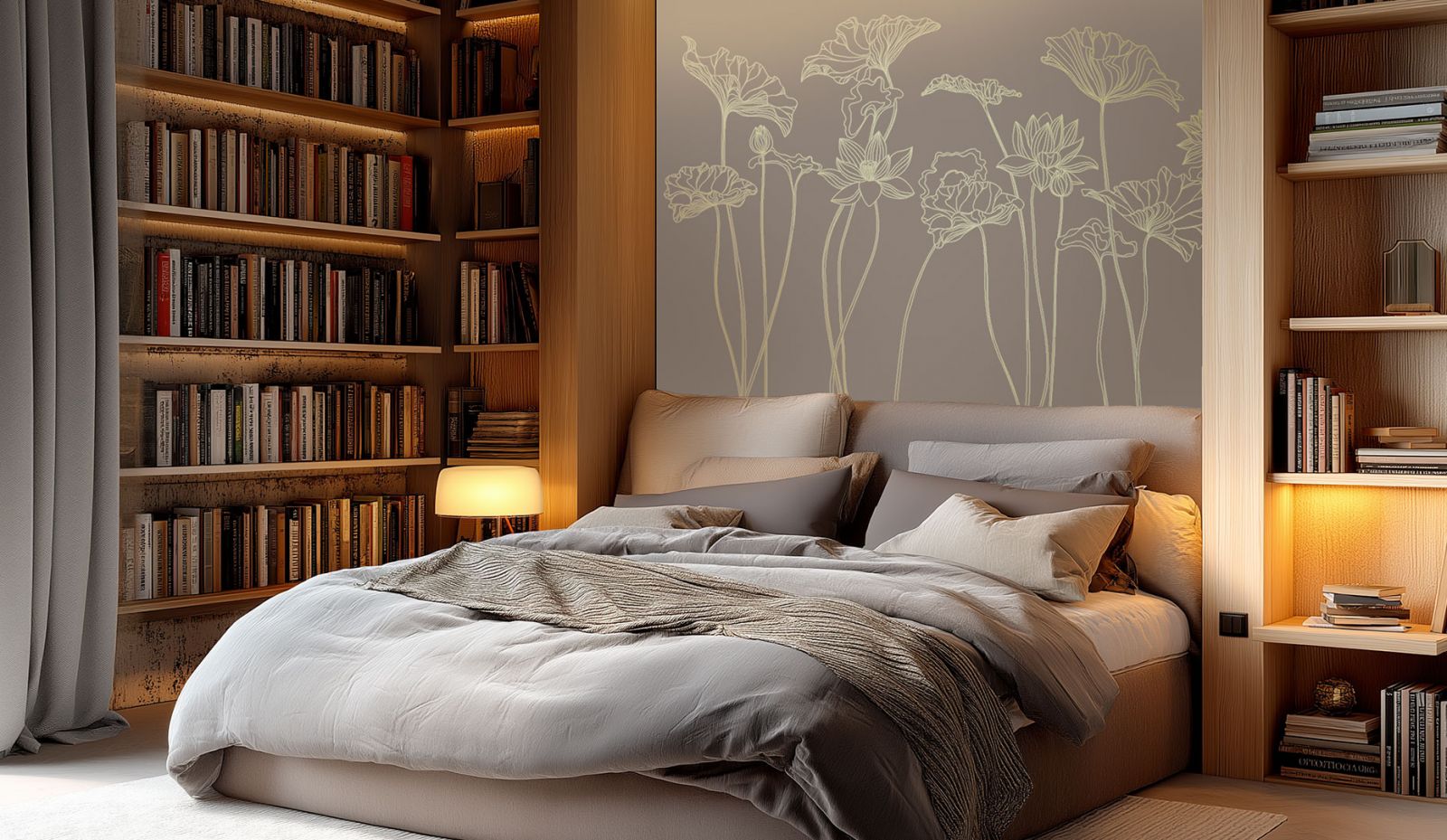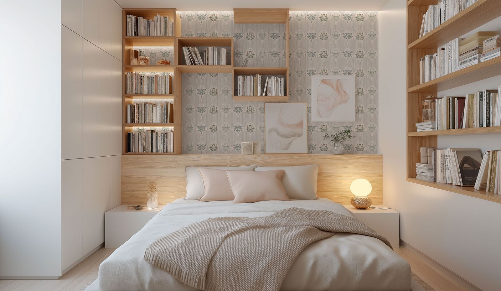 Итак, если вы решили обустроить мини-библиотеку в спальне, стоит подумать о зонировании. Ведь спальня - это место отдыха, и важно отделить зону чтения от зоны сна. Один из способов - использовать обои, например, для зоны кровати выбрать спокойные, пастельные тона, а для библиотечного уголка - более насыщенные и вдохновляющие оттенки, возможно, с интересным узором или текстурой. Теперь о главном - о книгах! Для небольшой библиотеки в спальне подойдут узкие стеллажи или полки, которые не займут много места. Можно использовать пространство над кроватью, повесив полки на стену. Добавьте к этому мягкий плед и прикроватную лампу с теплым светом, и ваш уютный уголок для чтения готов!