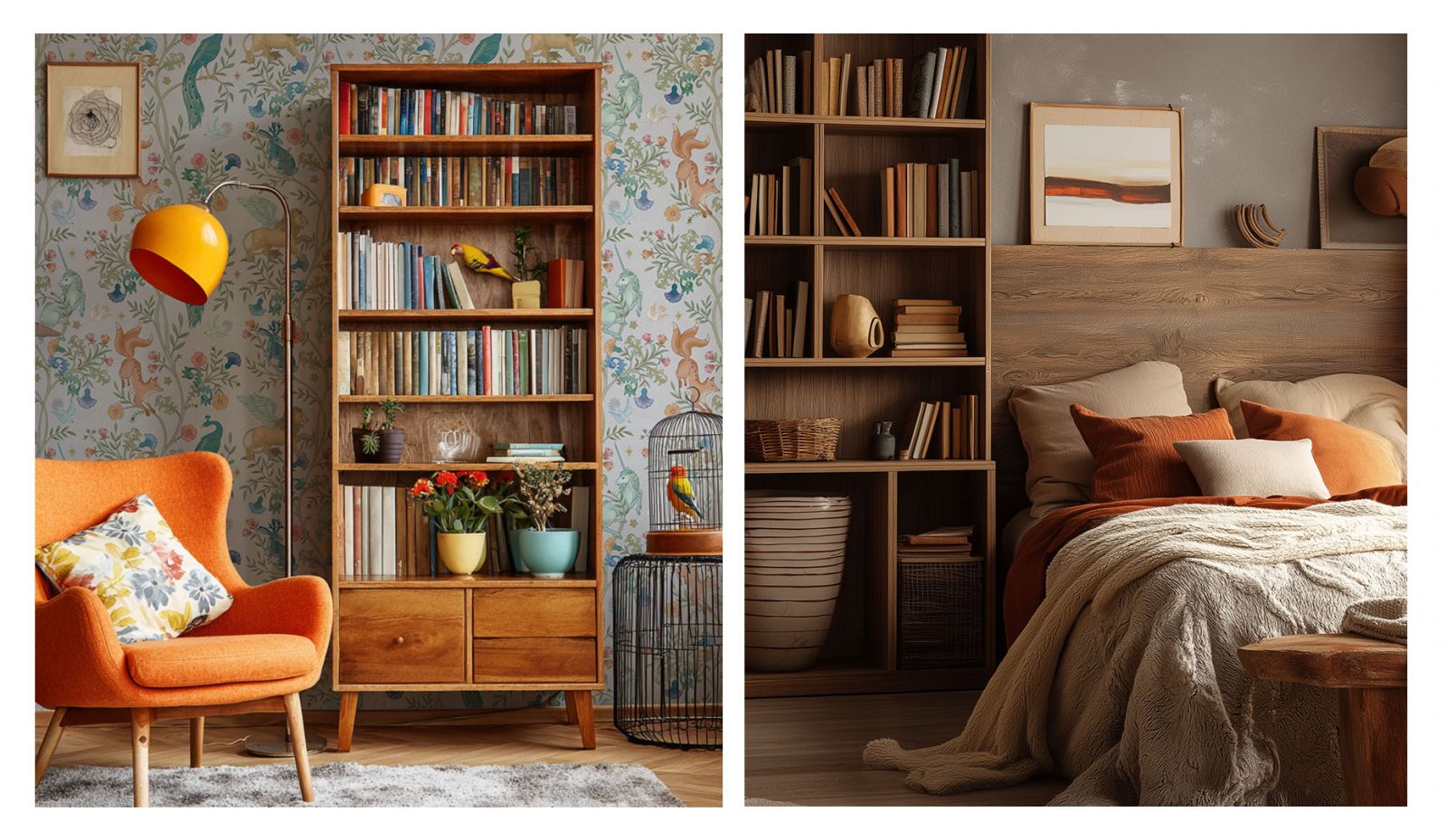 Мини-библиотека в спальне