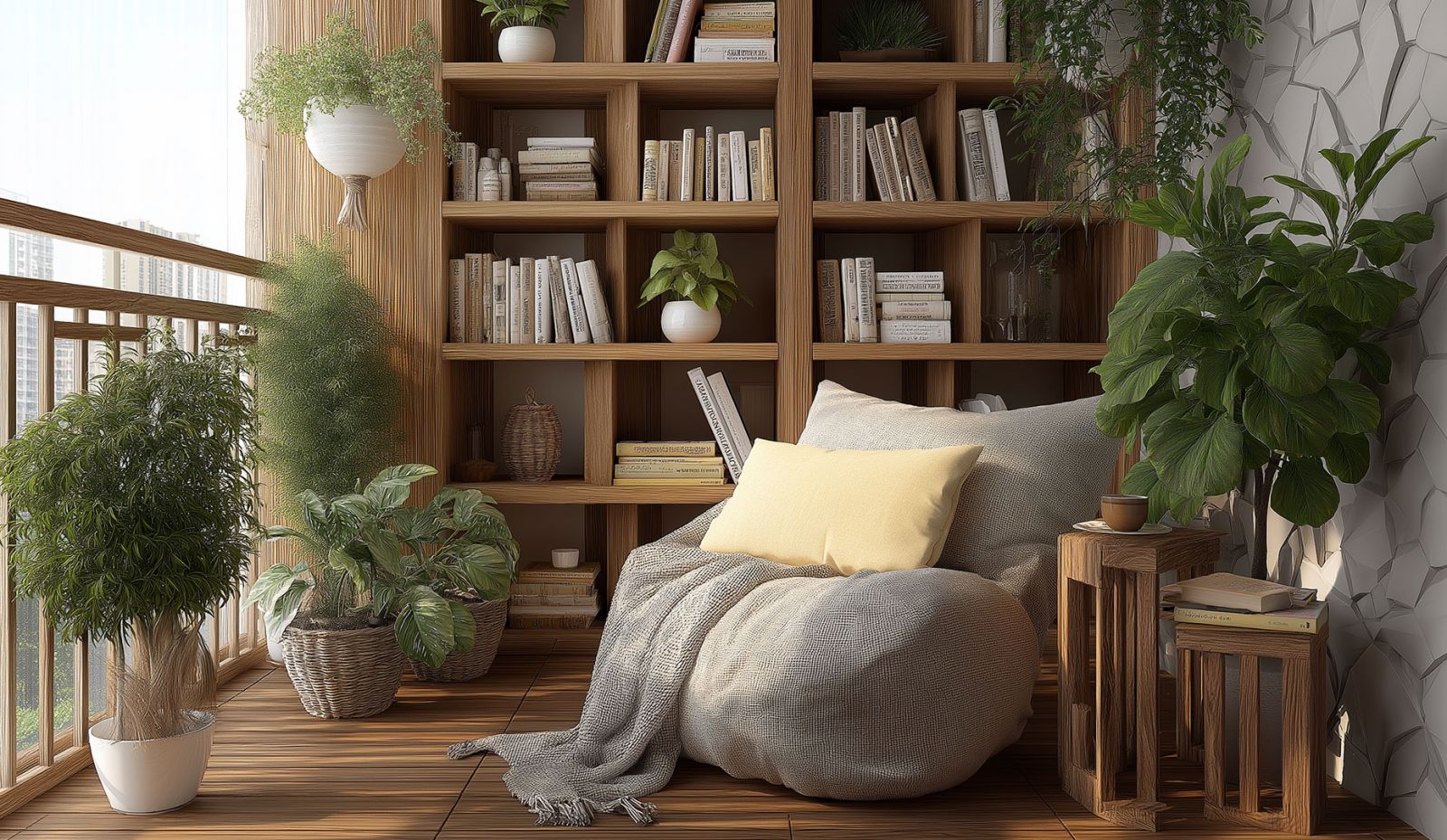 Да, и это пространство можно с успехом превратить в вашу личную библиотеку! Начните с удобного кресла или шезлонга, где можно расслабиться с книгой. Добавьте небольшой столик для чашки чая или кофе, установите компактные полки или стеллажи, они могут быть открытыми или закрытыми, в зависимости от вашего стиля. Используйте вертикальное пространство, чтобы не загромождать балкон.