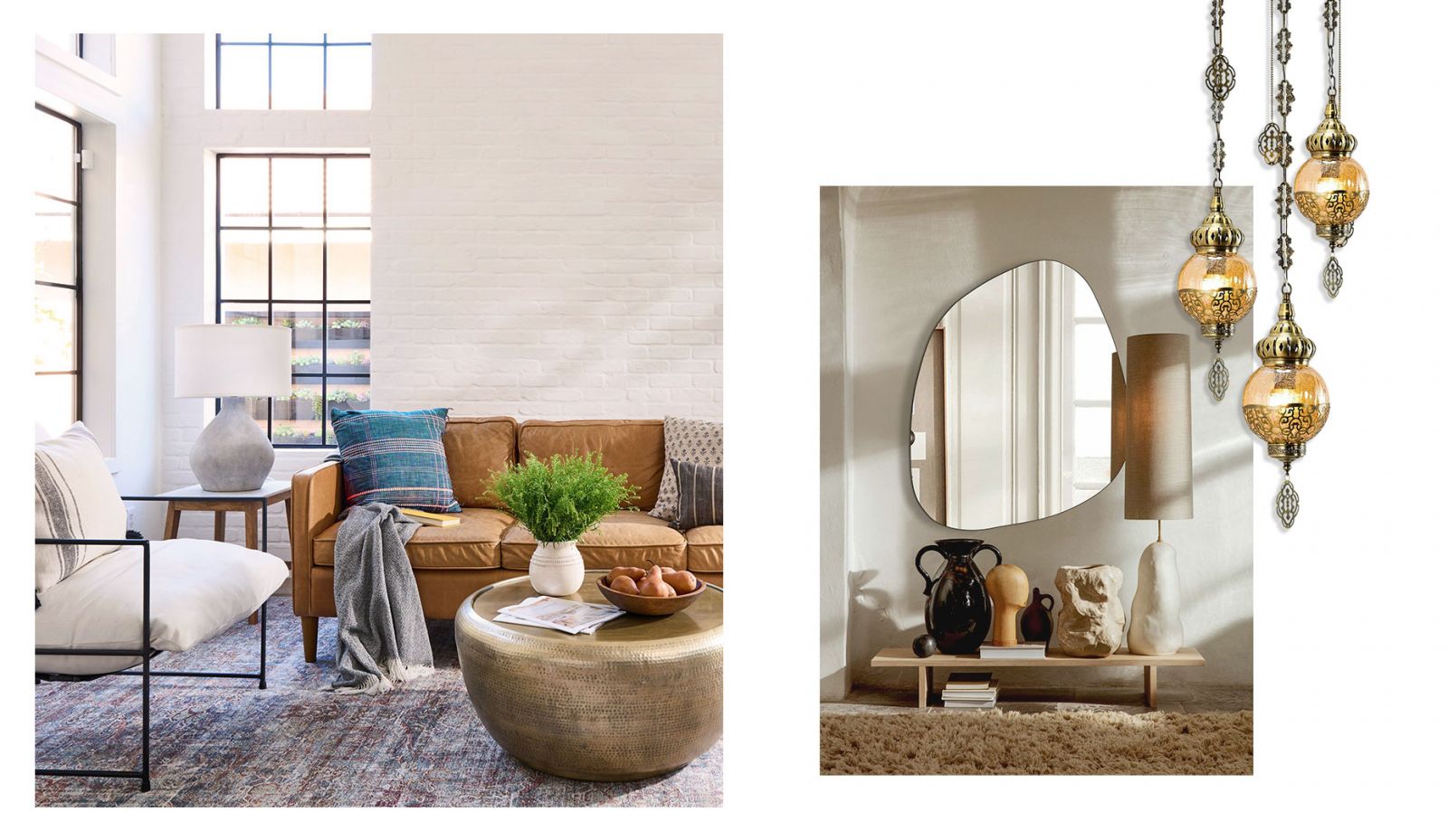 В стильном смешанном интерьере элементы мебели и декора, так или иначе, должны быть связаны друг с другом. Например, строгий лофт  вы захотите разбавить средиземноморскими нотами. В таком случае грубоватый кожаный диван можно дополнить подушками с интересным пёстрым орнаментом. И этот же орнамент использовать для салфеток на массивном деревянном столе. Плюс, подвесить к потолку или поставить на стол лампу в греческо-турецком стиле с множеством цветных маленьких стёкол или с узором.