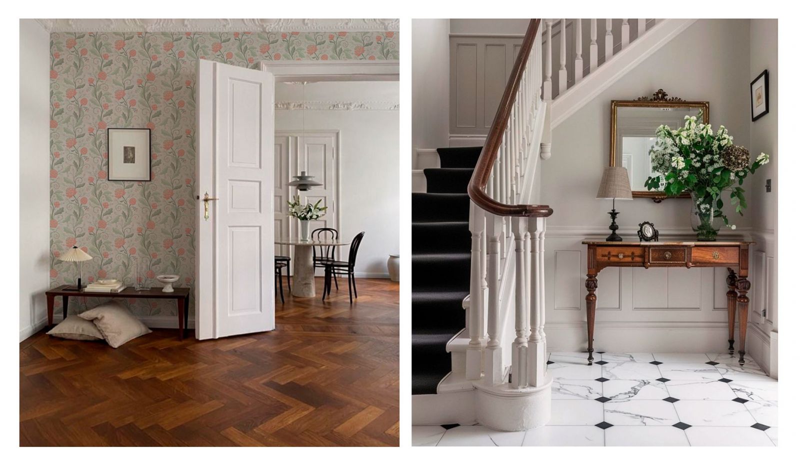 Как мы уже говорили, винтажный стиль отдаёт предпочтение натуральным материалам, особенно дереву. Именно деревянные полы (паркет или высококачественный дорогой ламинат с выраженной текстурой дерева) можно чаще всего встретить в винтажном интерьере. В прихожей, кухне и санузле чаще всего используется керамическая плитка с узорами или керамогранит с имитацией камня.