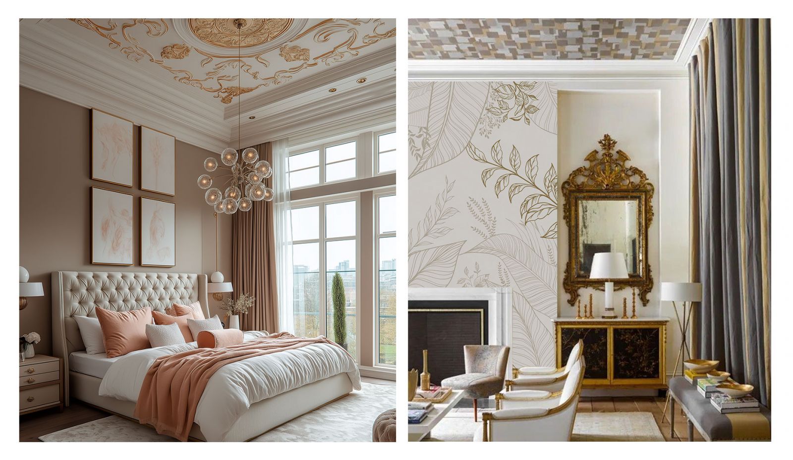 К высоте потолков в винтажном стиле нет каких-то строгих требований. Они могут быть как низкими, так и высокими. Основной и самый простой вариант оформления потолка – покраска в классический белый цвет. Допустима покраска в цвет основного оформления стен, но на несколько тонов светлее. Винтажный стиль своей аутентичностью близок к стилям кантри и прованс, поэтому на потолке можно использовать деревянные балки. Шарм и нотки изящества потолку поможет придать лепнина из гипса или пенополиуретана (розетки, плинтусы и карнизы). Иногда винтажный потолок оформляется обоями или росписью с цветочными мотивами. Особое внимание стоит уделить освещению. Никаких плоских светильников в стиле минимализм. В идеале, главным источником света должна стать массивная люстра с металлическими фигурными элементами и свисающим декором.