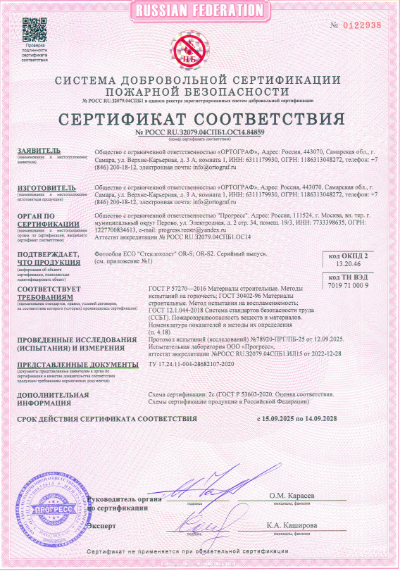 4. Пожарный сертификат бесшовные Eco обои гладь и шовные фотообои OF.