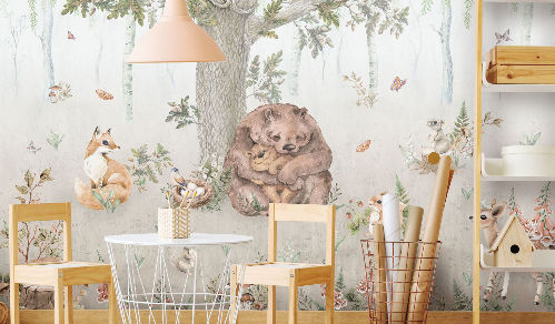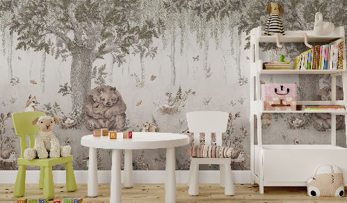 Вы обязательно подружитесь с этими забавными героями. Милые зверюшки живут в своем маленьком городе, в лесу, путешествуют на воздушных шарах и велосипедах, самолетах. Также сюда входят новые детские карты мира. Все дизайны выполнены в нескольких цветовых вариациях, чтобы вы могли подобрать гармоничный вариант для вашего проекта комнаты.